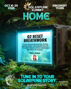 Whether you're seeking energetic balance, clarity of mind, or a deeper connection to yourself and others, O2 Reset Breathwork offers a powerful reset—amplifying your summit experience and aligning you with the Solarpunk vision of a more embodied, resilient future.