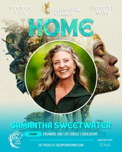 Samantha Sweetwater is a Gaian futurist, executive coach, ceremonial guide, and writer caring for people and the earth at the intersection of personal transformation and civilization transition. For over 30 years, she has facilitated evolutionary experiences in diverse communities, cultures and industries on five continents. She facilitates a systematic and embodied approach to deconstructing separation, healing trauma, and re-awakening awakening to nature, the body, and the soul. Through this, she helps her clients and students remember wholeness, revitalize kinship, and activate purposeful, regenerative leadership on behalf of All of Life.